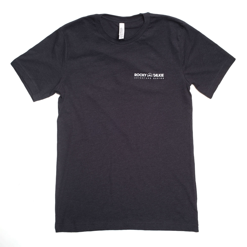 This unisex tee features our Adventure Radios logo on the front and our classic Mt. Sneffels logo on the back. This slim-fit, unisex crewneck tee is constructed from 90% cotton and 10% polyester.