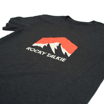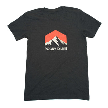 A Rocky Talkie team favorite, this slim-fit, unisex crewneck tee was designed in collaboration with YoColorado in Golden, CO. Ultra soft tri-blend material (50% polyester, 25% combed and ring-spun cotton, and 25% rayon) with our classic Rocky Talkie logo.