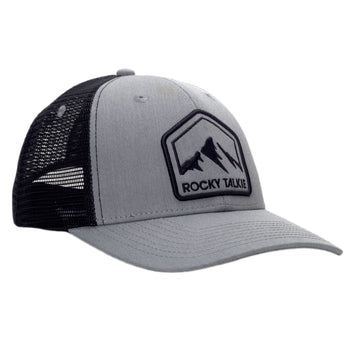 Our black and grey two-tone Rocky Talkie Logo Trucker hat was designed in collaboration with YoColorado in Golden, CO, and is inspired by Mount Sneffels.