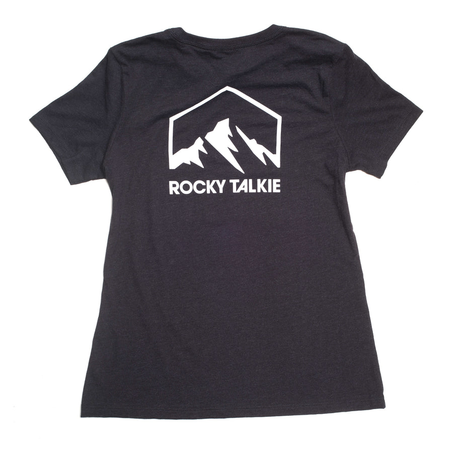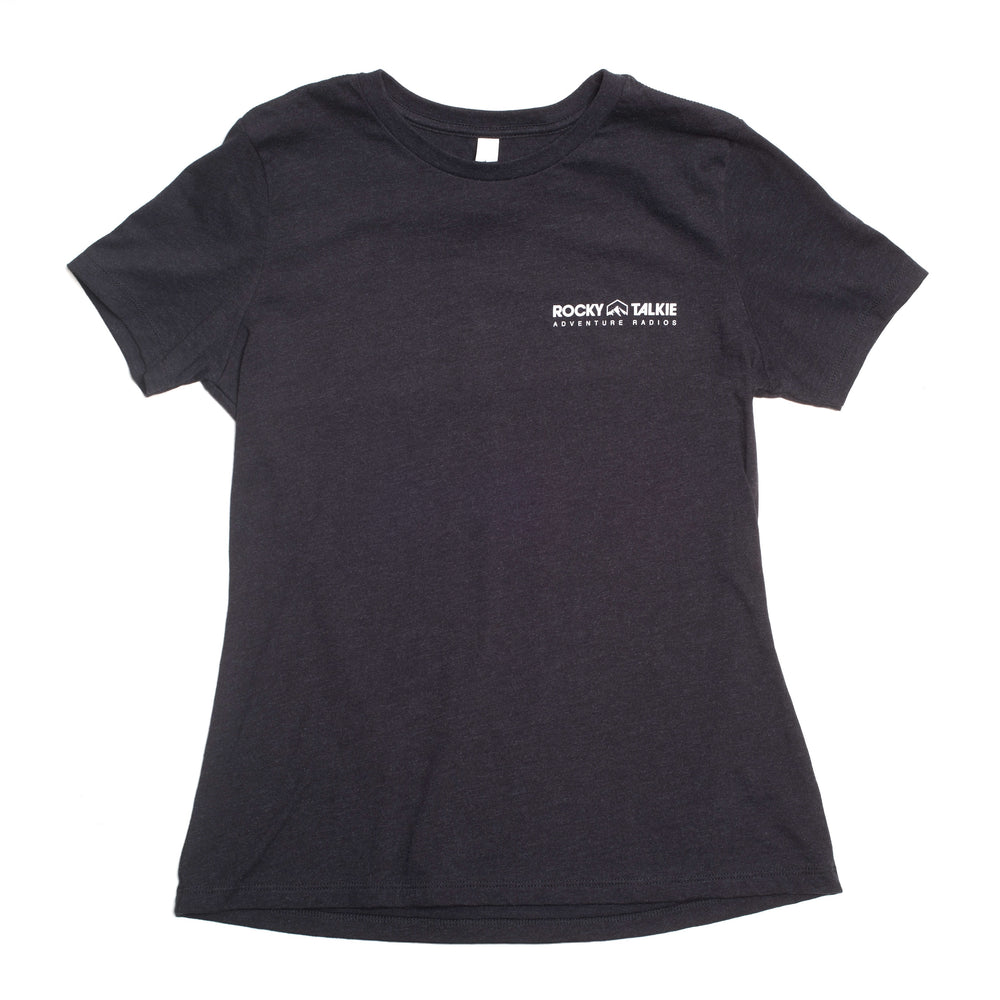 This women's crewneck tee features our Adventure Radios logo on the front and our classic Mt. Sneffels logo on the back. This slim-fit tee is constructed from 90% cotton and 10% polyester.